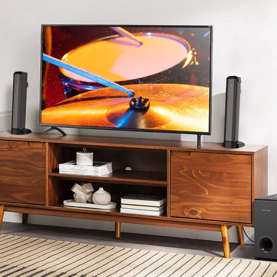 Šis garso baras turi du erdvinius garsiakalbius su 20 pėdų ilgio prailginimo laidais, todėl galite juos išdėstyti pagal savo pageidavimus ir kambario išplanavimą ir mėgautis stabilesniu nei belaidis erdviniu garsu.