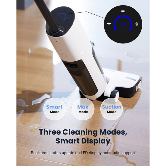Išmanus LED valdymo skydelis leidžia lengvai reguliuoti siurbimo galią ir stebėti dulkių siurblio būklę. Ekrane rodomas baterijos lygis, siurbimo našumas, šepetėlio strigimo ir užsikimšimo įspėjimai – patogesnė ir modernesnė alternatyva įprastiems mygtukams.