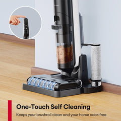 „Ultenic“ belaidis drėgnas/sausas dulkių siurblys suteikia galimybę vienu metu siurbti, plauti ir valyti grindis. Greitesnis ir lengvesnis įvairių rūšių nešvarumų valymas. Paspaudus vieną mygtuką pradedamas automatinis valymo ciklas, kuris pašalina poreikį rankiniu būdu valyti nešvarius šepetėlius.