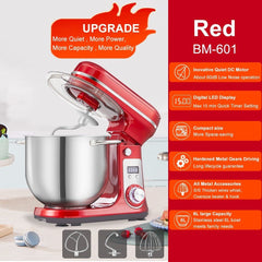Komplektuojamas su 6 litrų maistinio nerūdijančio plieno dubeniu su dviem patogiomis rankenomis. BioloMix BM601 puikiai tinka 8–10 asmenų šeimos vakarienėms. Taip pat komplekte yra metalinis plaktuvas, padidintas kablio formos tešlos maišiklis su teflono danga bei plokščias maišiklis.