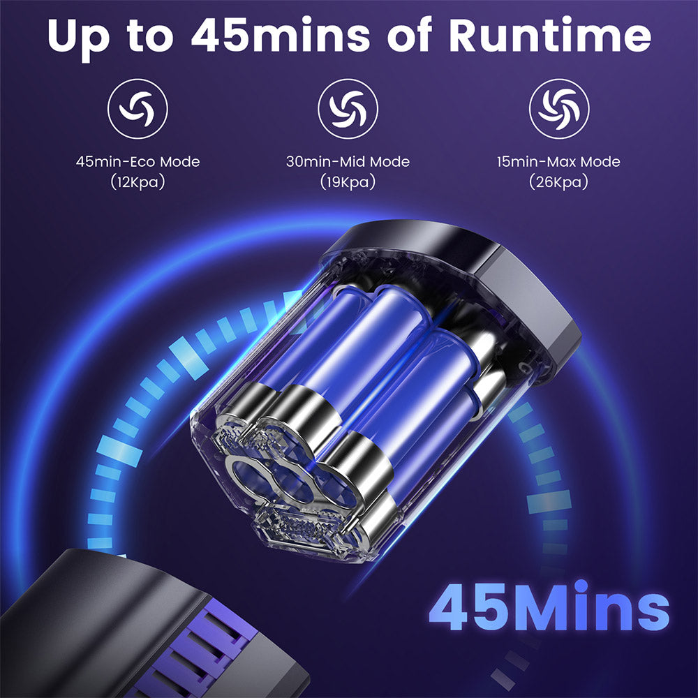 Ilgai veikianti baterija – iki 45 minučių darbo