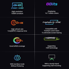 🌀 1500R lenktas ekranas – maksimalus įsitraukimas