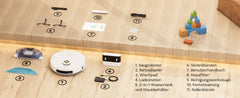 - 2 in 1 dulkių dėžė ir elektroniniu būdu valdomas vandens rezervuaras suteikia galimybę rinktis iš trijų valymo režimų: tik siurbimas, tik plovimas arba kombinuotas siurbimas, plovimas ir valymas.