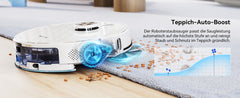 Robotas automatiškai aptinka kilimus ir padidina siurbimo galią iki 6000 Pa giluminiam valymui. Taip pat lengvai įveikia iki 20 mm aukščio kliūtis.