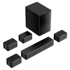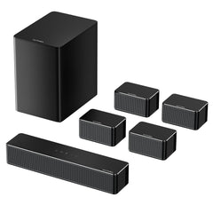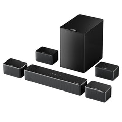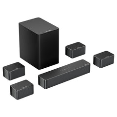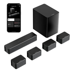 4 laidiniai erdviniai garsiakalbiai (2 priekiniai + 2 galiniai) ir 6.5 colio belaidis žemųjų dažnių garsiakalbis sukuria platų ir gilų garso lauką.