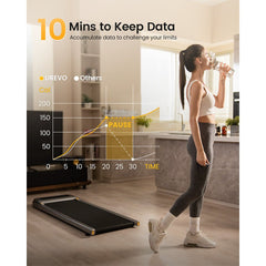 UREVO takelis po stalu yra tik 11 cm storio ir sveria 24,1 kg. Su dviem priekiniais mobiliais ratais, jį gali lengvai perkelti bet kas. Patogumui bėgimo takelis nereikalauja surinkimo ir gali būti naudojamas iškart po išpakavimo.